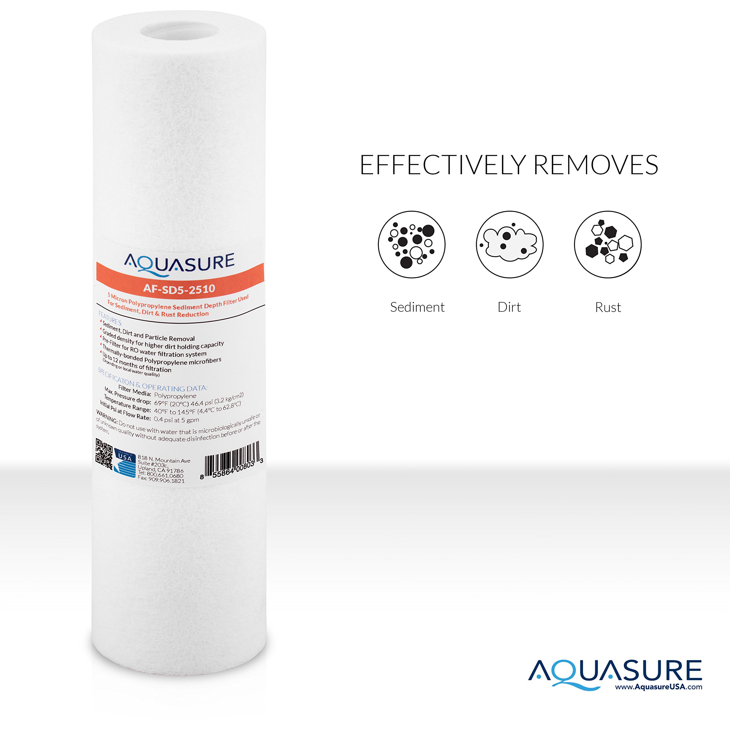 - 5-Micron Polypropylene Radial Flow Sediment Filter help traps dirt, sand, rust, sediments and larger particles in the water.